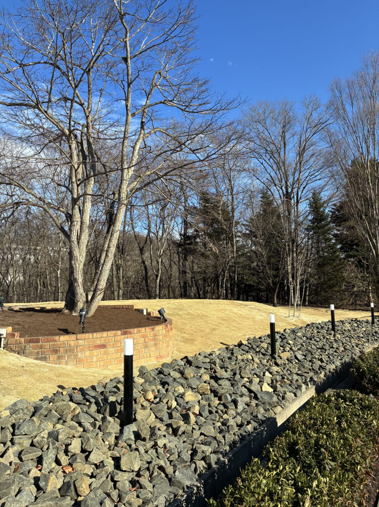 割栗石の落ち着いた質感との鮮やかなコントラストが生まれ、景観をより一層美しく引き立てます。