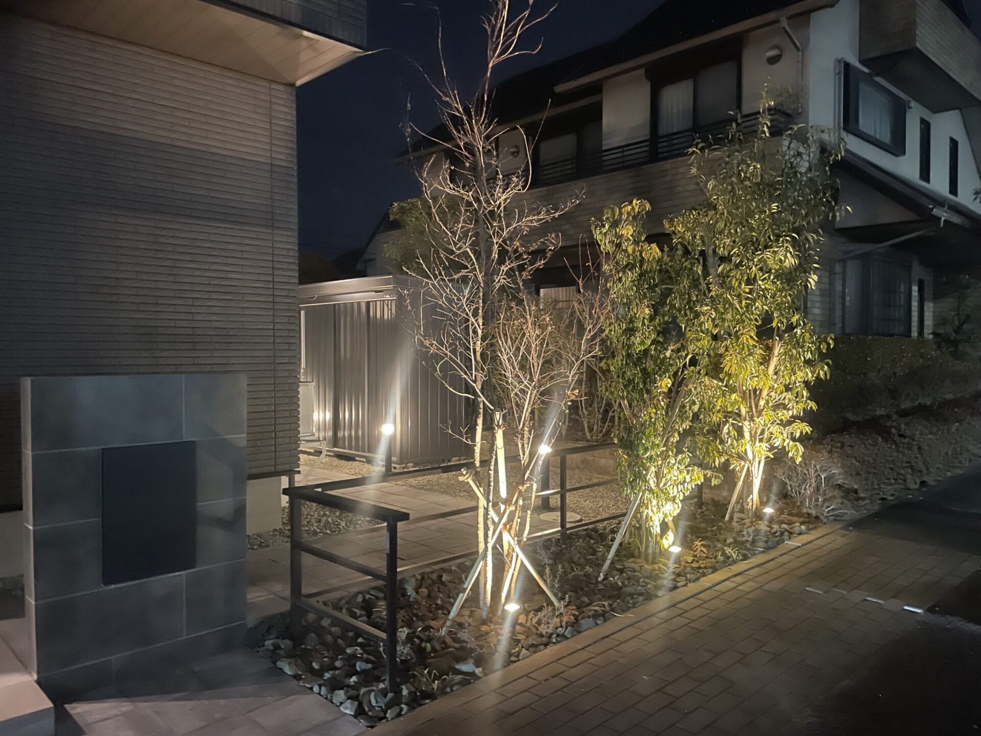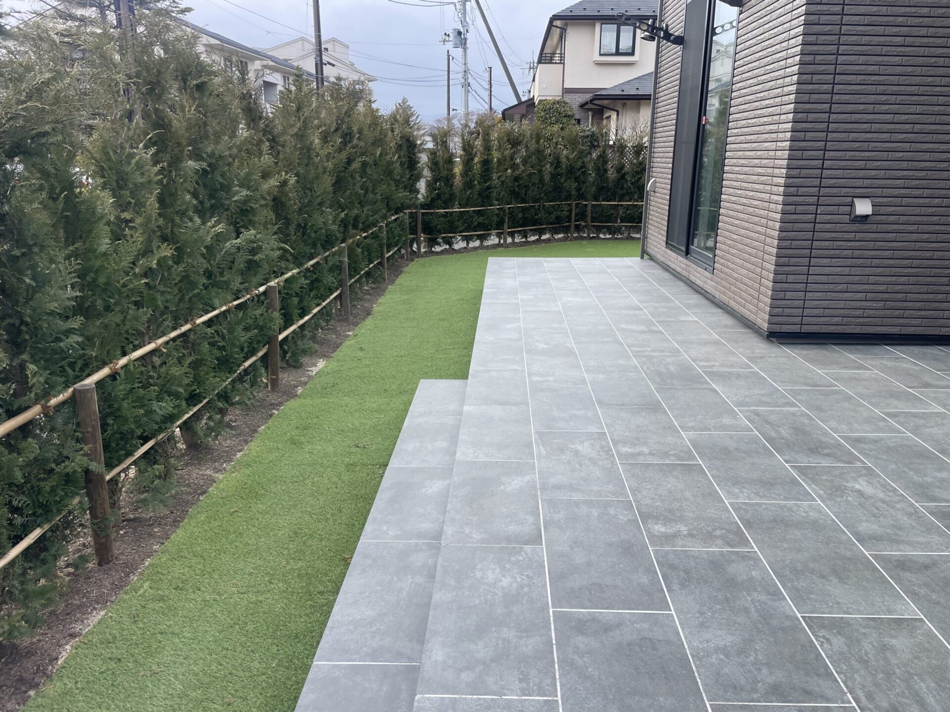 アプローチからお庭まで「タカショー・セラレバンテ」と「エスビック・パエリア」を贅沢に敷き詰め、